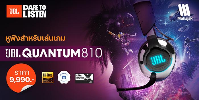 - ให้เสียงสมจริงรอบทิศทาง คุณภาพสูง JBL QuantumSURROUND and DTS Headphone:X version 2.0