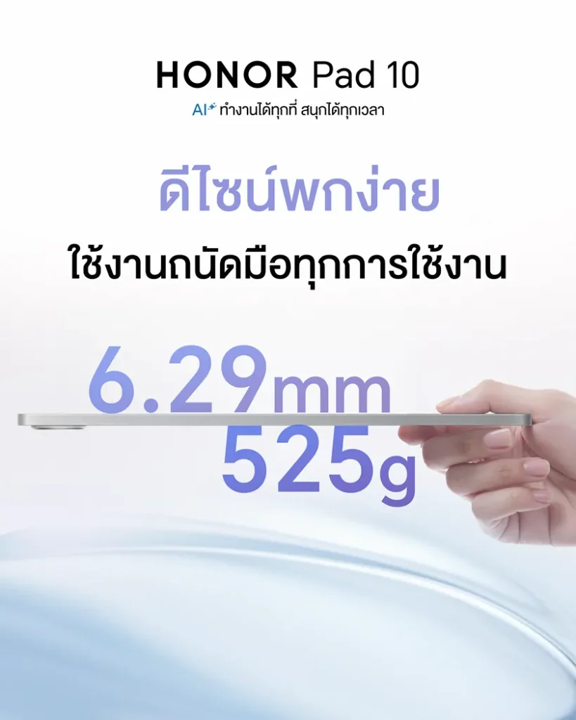 พร้อมดีไซน์วัสดุเกรดเรือธงที่ทั้งทนทานและหรูหรา ตัวเครื่องบางเบา พกพาสะดวก และใช้งานได้สบายในทุกสถานการณ์ ทำให้ HONOR Pad 10 เป็นตัวเลือกที่ลงตัวที่สุดสำหรับผู้ใช้ที่ต้องการความคุ้มค่า ฟังก์ชันครบครัน และประสบการณ์เหนือชั้นในทุกมิติ