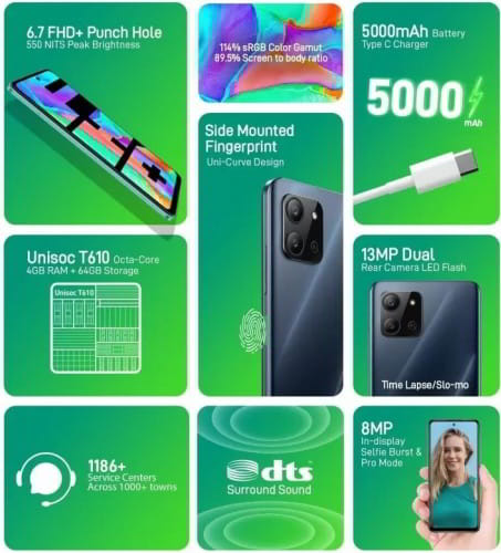 รวมทั้งติดตั้งเซ็นเซอร์สแกนลายนิ้วมือที่ด้านข้างเครื่อง, ลำโพงคู่สเตอริโอ และระบบเสียง DTS Surround Sound, รองรับ 2 SIM, รองรับ 4G LTE, Wi-Fi 802.11 b/g/n, Bluetooth 5.0, GPS + GLONASS, พอร์ต USB Type-C, ช่องหูฟัง 3.5 มม. และแบตเตอรี่ความจุ 5,000mAh รองรับการชาร์จ 10W