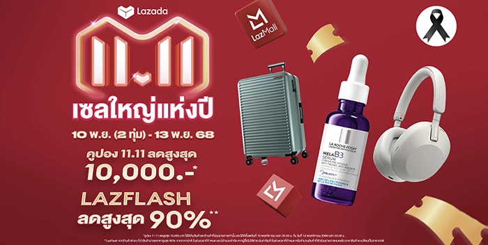 ลาซาด้า ผู้นำแพลตฟอร์มอีคอมเมิร์ซแห่งเอเชียตะวันออกเฉียงใต้ เดินหน้ายกระดับวงการอีคอมเมิร์ซยุคใหม่ด้วยการส่งมอบประสบการณ์ช้อปปิงคุณภาพจากแบรนด์ชั้นนำ ล่าสุดประกาศต้อนรับสินค้าหลายล้านรายการจากแบรนด์ดังทั้งไทยและระดับโลกสู่ LazMall ร่วมเสริมทัพรับเมกะแคมเปญ “ลาซาด้า 11.11 เซลใหญ่แห่งปี” ซึ่งจัดขึ้นระหว่างวันที่ 10 พฤศจิกายน (เริ่ม 2 ทุ่ม) ถึง 13 พฤศจิกายน 2568 โดยมีไฮไลต์อย่างคูปองส่วนลดสูงสุด 10,000 บาท* และ LazFlash ลดสูงสุดถึง 90%* พร้อมมอบความคุ้มค่าครบทุกมิติให้นักช้อปไทย