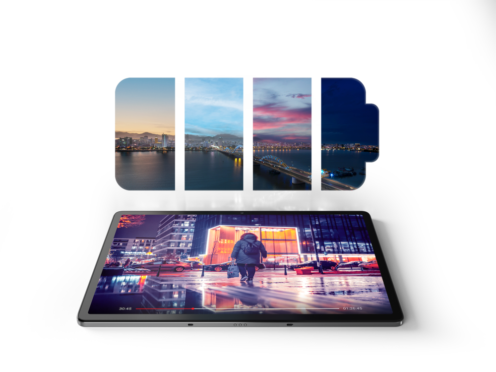 แรมขนาด 8 GB ในหน่วยประมวลผล octa-core processor ให้ความลื่นไหลในการใช้งาน และด้วยแบตเตอรี่ขนาดความจุสูงถึง 10,200mAh ผู้ใช้งานจึงสามารถเล่นวีดีโอต่อเนื่องได้นานถึง 10 ชั่วโมง2 ในการชาร์จเพียงครั้งเดียว