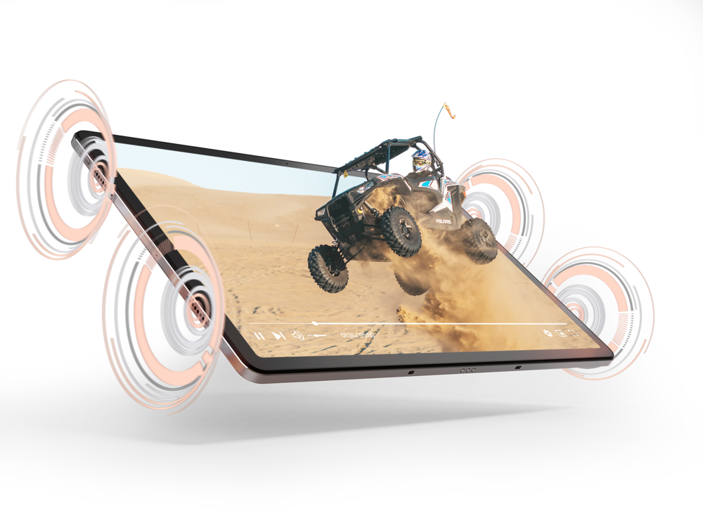 หน้าจอ LCD ขนาด 12.7 นิ้ว ความละเอียดระดับ 3K (2944 x 1840) ให้การใช้งานด้านความบันเทิงทั้งการดูหนัง ทำงานออกแบบ หรือจะเล่นเกม ก็ทำได้ อีกทั้งหน้าจอยังมีมุมมองที่กว้าง มีความละเอียดและคมชัด pixel มากกว่าหน้าจอ Full-HD ทั่วไปถึง 50% จึงให้รายละเอียดภาพคมชัด สีสันสมจริง สะดุดตา นอกจากนี้เครื่องยังมาพร้อมลำโพง JBL และ ระบบเสียง Dolby Atmos ที่ให้คุณภาพเสียงอย่างมีมิติ