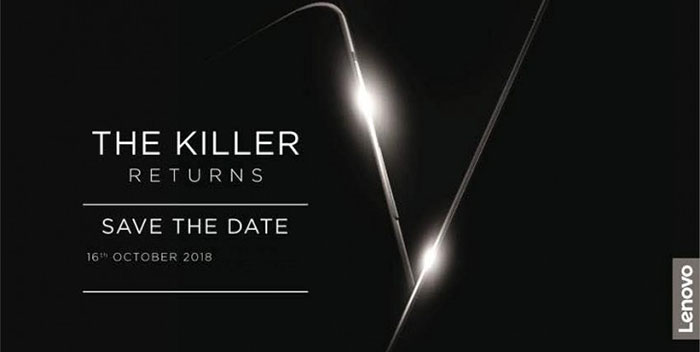 ล่าสุด Lenovo ได้ปล่อยภาพทีเซอร์เตรียมเปิดตัวสมาร์ทโฟนรุ่นใหม่ที่ประเทศอินเดียในวันที่ 16 ตุลาคมนี้ โดยภาพทีเซอร์เผยให้เห็นตัวเครื่องที่มาพร้อมดีไซน์โค้งมน และข้อความ The Killer Returns ซึ่งยังไม่ระบุว่าเป็นรุ่นอะไร แต่คาดว่าจะเป็นรุ่น Lenovo Z5 หรือไม่ก็ Z5 Pro ว่าที่สมารืทโฟนเรือธงรุ่นใหม่ที่มาพร้อมตัวเครื่องแบบเลื่อนสไลด์ และกล้องหลัง 4 ตัวตามที่เป็นข่าวลือ