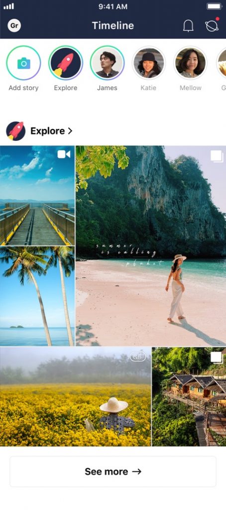 ไม่ว่าจะเป็นฟีเจอร์ Explore ใน LINE ไทม์ไลน์ กับการใช้เทคโนโลยี Machine Learning ศึกษาพฤติกรรมความชอบของผู้ใช้บนแพลตฟอร์ม เพื่อรวบรวมและแสดงผลโพสต์ที่น่าสนใจ โดนใจผู้ใช้แต่ละคน ให้สามารถเข้าเลือกดูและกดติดตามหรือ Follow ได้ตามใจชอบ โดยไม่จำเป็นต้องเป็นเพื่อนกันใน LINE ฉีกกฎโลกโซเชียลแบบเดิมๆ สร้างอิสระให้กับผู้ใช้ แต่ยังคงไว้ซึ่งความเป็นส่วนตัว