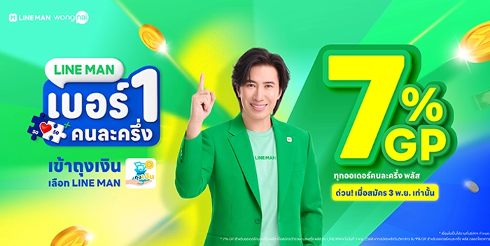 LINE MAN แพลตฟอร์มฟู้ดเดลิเวอรี่อันดับ 1 ของไทย หนุนร้านอาหารเข้าร่วม “คนละครึ่งพลัส”ประกาศปรับลดค่า GP เหลือเพียง 7% สำหรับร้านอาหารที่สมัครเข้าร่วมโครงการในวันที่ 3 พฤศจิกายน 2568 และลดค่า GP เหลือ 9% สำหรับร้านอาหารที่สมัครเข้าร่วมโครงการตั้งแต่วันที่ 4 พฤศจิกายนเป็นต้นไปจนจบโครงการ
