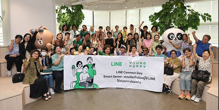 LINE ประเทศไทย นำโดย นางสาวณิชารัศมิ์ อาชญาสิทธิวัตร รองประธานเจ้าหน้าที่ฝ่ายการตลาด (Chief Marketing Officer) LINE ประเทศไทย ผนึกกำลัง YoungHappy คอมมูนิตีผู้สูงวัย