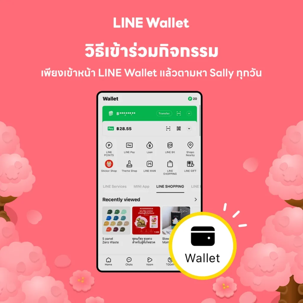 “ภารกิจตามหาแซลลี่: ต้อนรับซากุระบาน ฤดูกาลรับพอยท์” เปิดให้ร่วมสนุกตั้งแต่วันที่ 11 – 20 มีนาคม 2569 บน LINE Wallet และยังเป็นอีกหนึ่งก้าวสำคัญของ LINE Wallet ในการพัฒนาประสบการณ์การใช้งานที่สนุกและมีส่วนร่วมมากขึ้น พร้อมเตรียมต่อยอดกิจกรรมรูปแบบนี้ให้ผู้ใช้งานได้ติดตามกันอีกในอนาคต