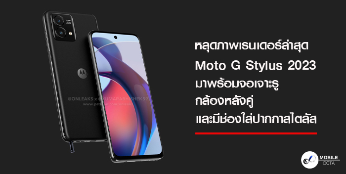@OnLeaks แหล่งข่าวหลุดสมาร์ตโฟนชื่อดังร่วมกับผู้ใช้บัญชี Twitter ที่ใช้ชื่อ @kumarabhishek59 ได้ทวีตภาพเรนเดอร์ของ Motorola Moto G Stylus 2023 ที่หลุดออกมาเผยให้เห็นรูปลักษณ์ดีไซน์ด้านหน้ามาพร้อมหน้าจอแสดงผลแบบ Punch Hole Display เจาะรูฝังกล้องเซลฟี่ที่ตรงกลางด้านบน และเหลือขอบใต้หน้าที่ไม่หนามาก