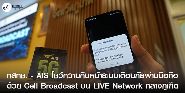 โดยหลังจากที่ร่วมกันพัฒนามาอย่างต่อเนื่อง โดยล่าสุดต้องขอบคุณ สำนักงาน กสทช. ที่ได้สนับสนุนงบประมาณจากเงินกองทุนวิจัยและพัฒนากิจการกระจายเสียง กิจการโทรทัศน์ และกิจการโทรคมนาคม เพื่อประโยชน์สาธารณะ (กทปส.) ที่ทำให้ AIS และผู้ให้บริการทุกราย ได้ร่วมทดลอง ทดสอบ เทคโนโลยี Cell Broadcast ณ จังหวัดภูเก็ต ได้ผลตามเป้าหมาย และพร้อมที่จะขยายผลเชื่อมโยงกับระบบเตือนภัยของประเทศได้อย่างเต็มประสิทธิภาพต่อไป