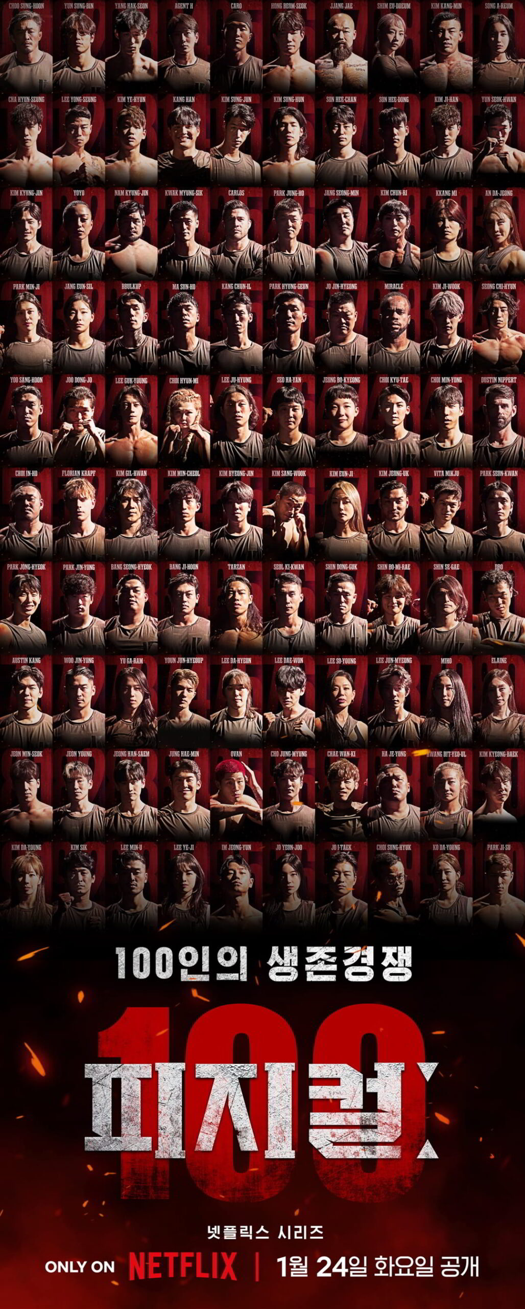 ใครจะยืนหยัดเป็นคนสุดท้าย? นี่คือรายการเรียลลิตี้แนวเอาตัวรอดที่ออกแบบมาเพื่อค้นหาผู้ที่มีร่างกายแข็งแกร่งที่สุด โดยสถานที่ถ่ายทำขนาดใหญ่ซึ่งออกแบบมาเพื่อรายการ ร้อยแกร่งแข่งอึด (Physical: 100) โดยเฉพาะ ได้กลายเป็นเวทีสำหรับการแข่งขันสุดเข้มข้นของเหล่าผู้ท้าชิงชายและหญิงถึง 100 คนที่มั่นใจและภูมิใจในร่างกายของตนเอง