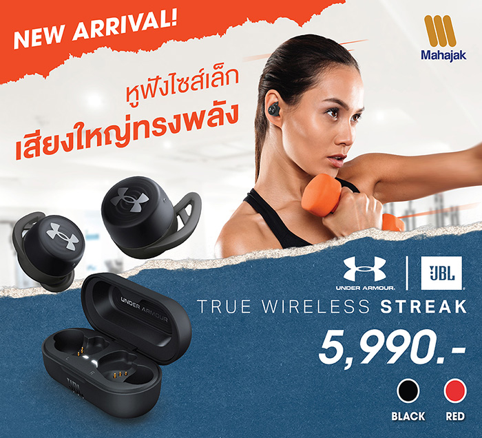 หูฟังออกกำลังกาย True Wireless ที่ออกแบบมาเพื่อแฟนๆ ของ Under Armour โดยเฉพาะ ด้วยดีไซน์ที่มีขนาดเล็ก น้ำหนักเบาพิเศษ และสามารถปรับขนาดให้พอดีกับหูผู้ใส่ ทำให้สามารถสวมใส่ได้ทั้งผู้ชายและผู้หญิง มาพร้อมกับพลังเสียง JBL Charged Sound ให้เบสที่หนักแน่นตามเอกลักษณ์ของ JBL ตัวหูฟังเป็นแบบ In Ear ใช้งานง่าย ตอบโจทย์สายสปอร์ตสุดๆ