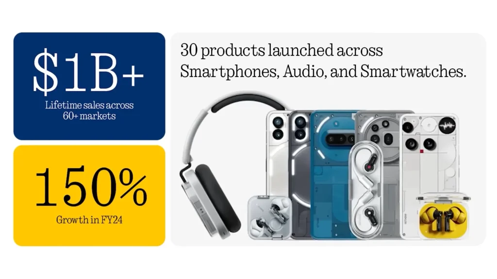 ตลอดปี 2568 Nothing เติบโตอย่างแข็งแกร่ง ด้วยยอดขายสะสมทะลุ 1 พันล้านดอลลาร์สหรัฐ พร้อมระดมทุนเพิ่มเติมได้อีก 200 ล้านดอลลาร์ และมีนักลงทุนจากคอมมูนิตี้ทั่วโลกมากกว่า 11,000 คน ตัวเลขเหล่านี้สะท้อนถึงความเชื่อมั่นในแบรนด์ และการสนับสนุนจากผู้ใช้อย่างต่อเนื่อง