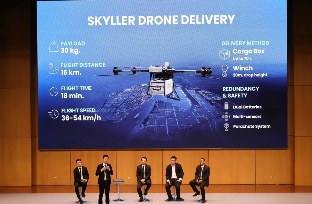 - บริษัท สไกลเลอร์ โซลูชั่นส์ จำกัด: สาธิตการบินโดรน ส่งอุปกรณ์ เครื่องกระตุกหัวใจไฟฟ้าอัตโนมัติ (Automated External Defibrillator, AED) จากไอคอนสยามข้ามแม่น้ำเจ้าพระยาไปยัง ริเวอร์ ซิตี้ แบงค็อก กรุงเทพมหานคร