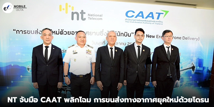 บริษัท โทรคมนาคมแห่งชาติ จำกัด (มหาชน) (NT) และ สำนักงานการบินพลเรือนแห่งประเทศไทย (CAAT) ร่วมกันจัดงานแถลงข่าว “การขนส่งทางอากาศยุคใหม่ด้วยโดรน” (The New Era of Drone Delivery)