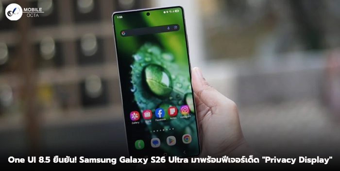 แม้จะมีกระแสข่าวว่า Samsung Galaxy S26 Ultra อาจไม่ได้มีการอัปเกรดฮาร์ดแวร์แบบก้าวกระโดดเมื่อเทียบกับรุ่นก่อนหน้า แต่ล่าสุดมีการค้นพบฟีเจอร์ “ไม้ตาย” ใหม่บนซอฟต์แวร์ One UI 8.5 (เวอร์ชั่นที่จะเปิดตัวพร้อมเครื่อง) ซึ่งยืนยันแล้วว่า S26 Ultra จะมาพร้อมกับฟีเจอร์หน้าจอสุดล้ำที่เรียกว่า “Privacy Display”