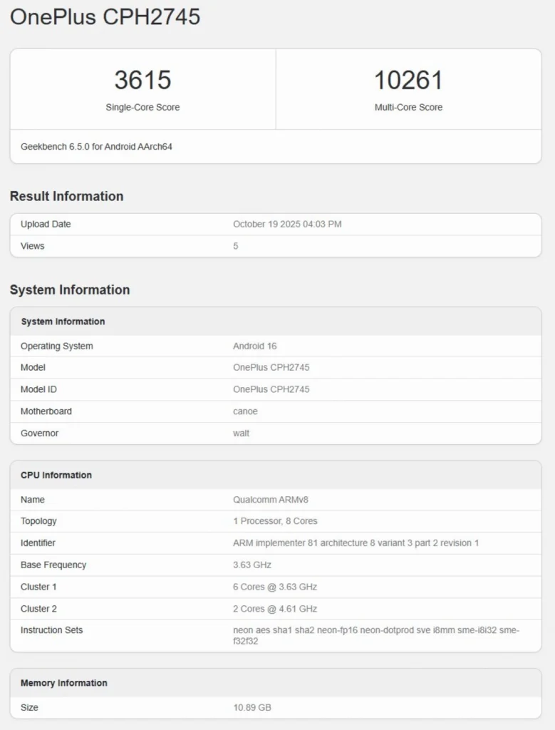 OnePlus 15 โผล่ทดสอบบน Geekbench