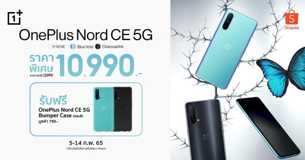 - OnePlus Nord CE 8+128GB ลดเหลือ 10,990 บาท จากราคาปกติ 12,990 บาท