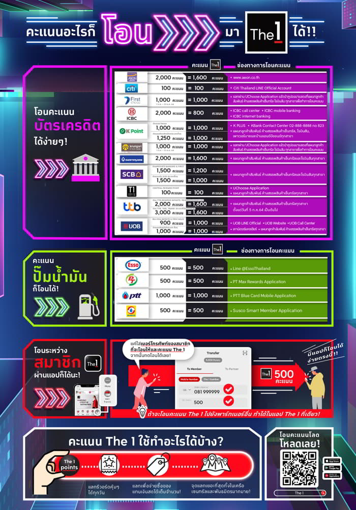 ซึ่งทั้งหมดได้ถูกรวบรวมไว้บนแอปพลิเคชั่น The 1 ภายใต้แนวคิด ‘Your Everyday Lifestyle App’ ที่รวบรวมทั้งส่วนลด รีวอร์ด และคอนเทนต์สำหรับทุกไลฟ์สไตล์ พร้อมด้วยฟีเจอร์ที่ช่วยให้การช้อปปิ้งทั้งออนไลน์และออฟไลน์สะดวกสบายไร้รอยต่อ อาทิ การโอน-แลก-เช็คคะแนน, สแกนจ่าย, เช็คยอดใช้จ่าย