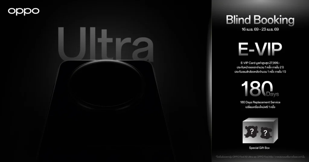 สามารถติดตามรายละเอียดเพิ่มเติม และเตรียมสัมผัสพลังความอัลตราครั้งแรกของประเทศไทยของ OPPO Find X9 Ultra และ OPPO Find X9s ไปพร้อมกันได้ในวันที่ 23 เมษายน 2569 เวลา 16.00 น. เป็นต้นไป ทาง Facebook, YouTube และ TikTok ของ OPPO Thailand เท่านั้น