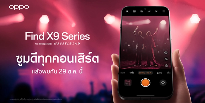 ออปโป้ ไทยแลนด์ ตอกย้ำประสบการณ์ใช้งานที่เหนือกว่า เตรียมส่งสมาร์ตโฟนแฟลกชิปที่สุดแห่งปี OPPO Find X9 Series สมาร์ตโฟนซูมดีทุกคอนเสิร์ต ด้วยการมาของกล้อง 200MP Hasselblad Telephoto คมชัดทุกการถ่ายภาพ ตอบโจทย์ทุกสายคอนเสิร์ต