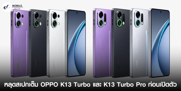 OPPO เตรียมเปิดตัว OPPO K13 Turbo และ K13 Turbo Pro ที่ประเทศจีนในวันที่ 21 กรกฎาคมนี้ ล่าสุดมีข้อมูลสเปกเต็มของสมาร์ตโฟนทั้ง 2 รุ่นหลุดออกมาแล้ว