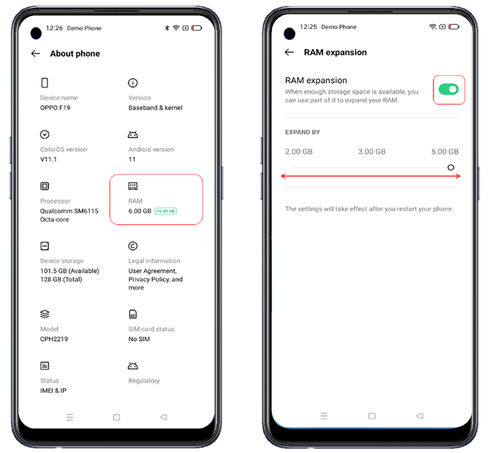 โดย RAM Expansion ของ OPPO จะช่วยให้ผู้ใช้สามารถปรับเปลี่ยน ROM ที่มีอยู่บนสมาร์ทโฟนเป็นหน่วยความจำเสมือน (RAM) ได้ พร้อมสามารถปรับเปลี่ยนระดับการขยายได้อิสระ ซึ่งผู้ใช้ OPPO A94, OPPO A74 5G และ OPPO A74 จะสามารถปรับระดับการขยายของ RAM ในระดับ 2GB, 3GB และ 5GB ได้บนสมาร์ทโฟนของตน
