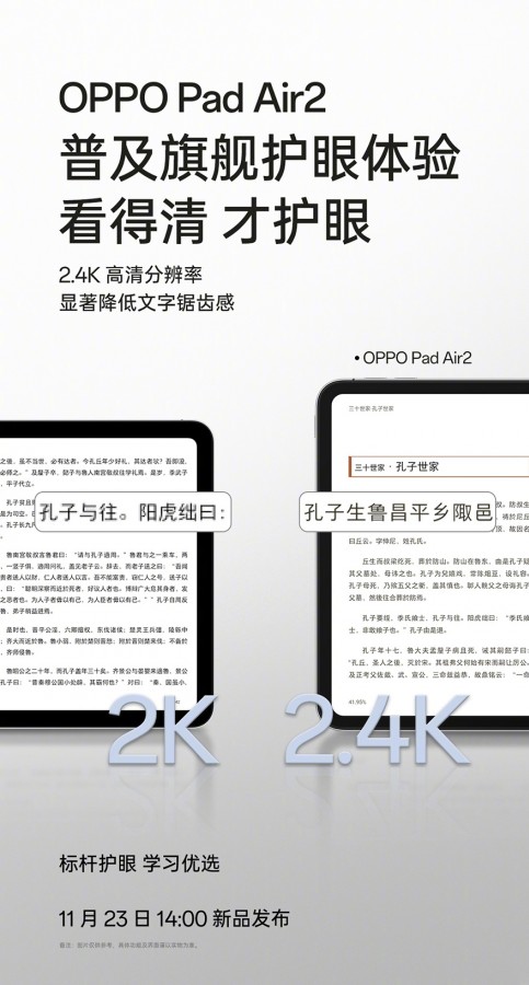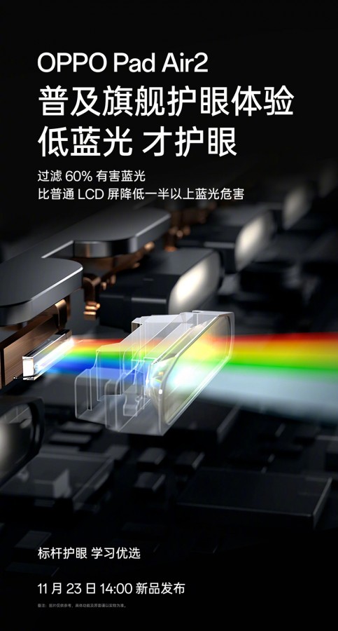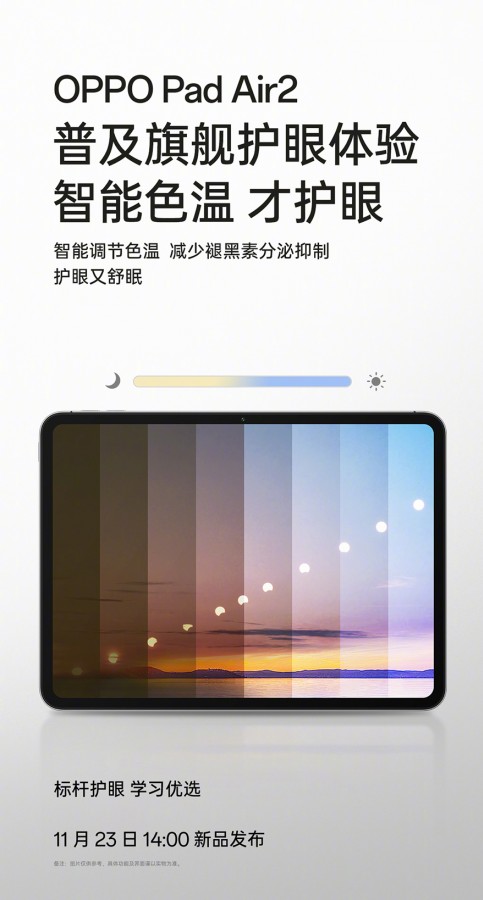 OPPO มีกำหนดเปิดตัว OPPO Reno 11 Series ที่ประเทศจีนในวันที่ 23 พฤศจิกายนนี้ และจะมีการเปิดตัว OPPO Pad Air2 แท็บเล็ตรุ่นใหม่พร้อมกันด้วย ล่าสุดมีภาพโปรโมทของ OPPO Pad Air2 ที่เผยดีไซน์ และสเปกหลุดออกมาให้เห็นกันแล้ว