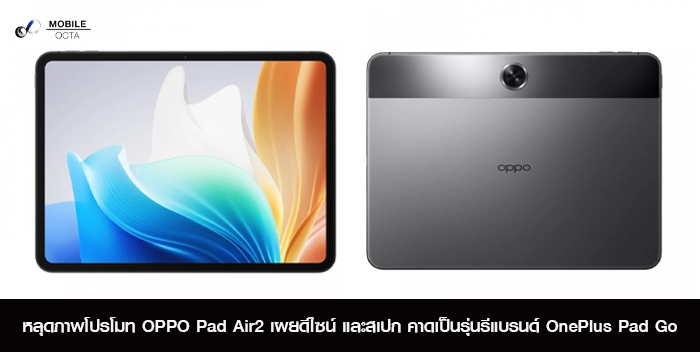 @evleaks หรือ Evan Blass แหล่งข่าวหลุดสมาร์ตโฟนได้โพสต์ภาพเรนเดอร์ของ OPPO Pad Air2 ผ่านบัญชี X ส่วนตัวเผยให้เห็นดีไซน์ที่คล้ายกับ OnePlus Pad Go โดยด้านหน้ามาพร้อมหน้าจอแสดงผลขนาดใหญ่ และติดตั้งกล้องหน้าเซลฟี่ที่ตรงกลางด้านบน ส่วนด้านหลังดีไซน์แบบสีทูโทน โดยตรงกลางด้านบนติดตั้งกล้องขนาดใหญ่ และถัดลงมามีโลโก้ OPPO