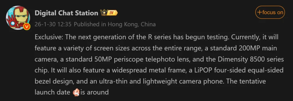 ล่าสุดมีรายงานจากแหล่งข่าวหลุดชื่อดังอย่าง Digital Chat Station บน Weibo ได้ออกมาเปิดเผยข้อมูลสเปคชุดใหญ่ของตระกูล Reno16 ที่น่าสนใจมาก โดยเฉพาะการอัปเกรดเรื่องกล้องและชิปเซ็ต