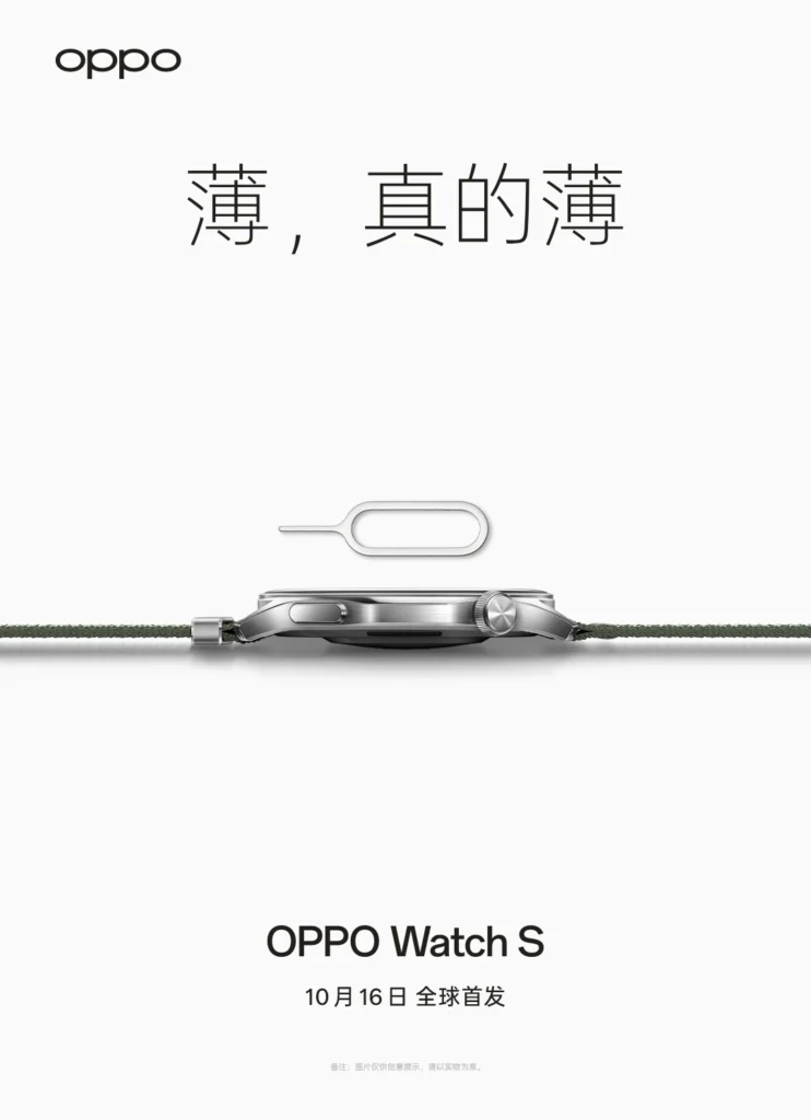 จากข้อมูลทีเซอร์ทางการและข่าวหลุดต่าง ๆ OPPO Watch S ถูกวางตำแหน่งให้เป็น “สมาร์ทวอทช์ทรงกลมที่บางที่สุด” ในตลาด ด้วยตัวเรือนที่มีความหนาไม่ถึง 9 มิลลิเมตร และมีน้ำหนักเบาเพียง 38 กรัม ซึ่งเทียบเท่ากับการนำเหรียญมาซ้อนกันเพียง 3 เหรียญเท่านั้น