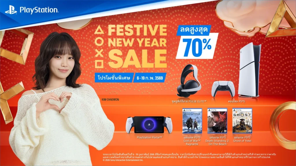 เตรียมพบกับโปรโมชันพิเศษต้อนรับปีใหม่ PlayStation Festive New Year Sale 2026 ซึ่งจะจัดขึ้นตั้งแต่วันที่ 6 กุมภาพันธ์ ถึง 19 กุมภาพันธ์ 2569 (หรือจนกว่าสินค้าจะหมด) ณ ร้านค้า หรือ ตัวแทนจำหน่ายที่ร่วมรายการ พร้อมเอาใจคอเกมด้วยส่วนลดคอนโซล อุปกรณ์เสริม ประกอบด้วย