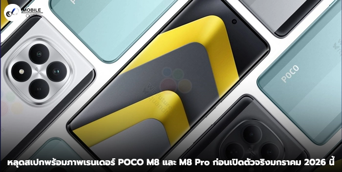 แฟน ๆ POCO เตรียมตัวให้พร้อม! ล่าสุดมีข้อมูลหลุดชุดใหญ่ของ POCO M8 Series ซึ่งคาดว่าจะประกอบด้วยรุ่นมาตรฐานอย่าง POCO M8 และรุ่นท็อป POCO M8 Pro โดยข้อมูลล่าสุดจาก WinFuture.de ได้เผยทั้งภาพเรนเดอร์ทางการและรายละเอียดสเปกเกือบทั้งหมด ก่อนกำหนดการเปิดตัวที่คาดว่าจะเกิดขึ้นในช่วงมกราคม 2026 นี้