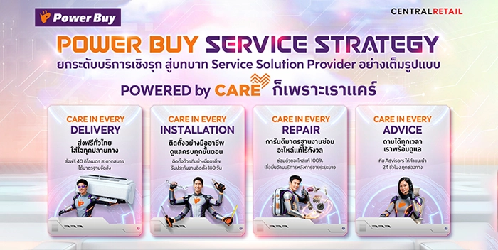 เพาเวอร์บาย ในเครือเซ็นทรัล รีเทล ประกาศเดินหน้ากลยุทธ์ด้านบริการเชิงรุก ภายใต้แนวคิด “Powered by Care: ก็เพราะเราแคร์” เพื่อสร้างความได้เปรียบทางการแข่งขัน ขับเคลื่อนองค์กรสู่บทบาท “Service Solution Provider” อย่างเต็มรูปแบบ เพื่อยกระดับประสบการณ์ที่สร้างความประทับใจในระยะยาวให้กับลูกค้า