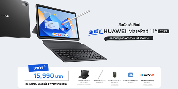 ใครที่มองหาแท็บแล็ตอัดแน่นด้วยฟังก์ชันเต็มรูปแบบเสมือนแล็ปท็อปเตรียมให้พร้อมสำหรับการพรีออเดอร์ HUAWEI MatePad 11 2023 WIFI 6+128GB ในราคาเพียง 15,990 บาท