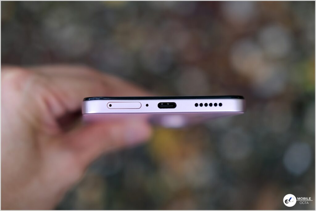 ด้านท้ายเครื่องมีช่องใส่ซิมการ์ด, ช่องไมโครโฟน, พอร์ต USB Type-C และช่องลำโพงเสียง