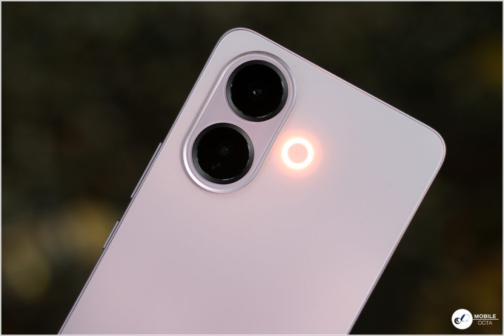 พลิกมาด้านหลังเครื่อง มุมซ้ายด้านบนติดตั้งกล้องเลนส์คู่ AI Dual Camera เรียงในแนวตั้ง ส่วนด้านชวาข้างโมดูลกล้องมาพร้อมไฟแฟลชแบบ Aura Light