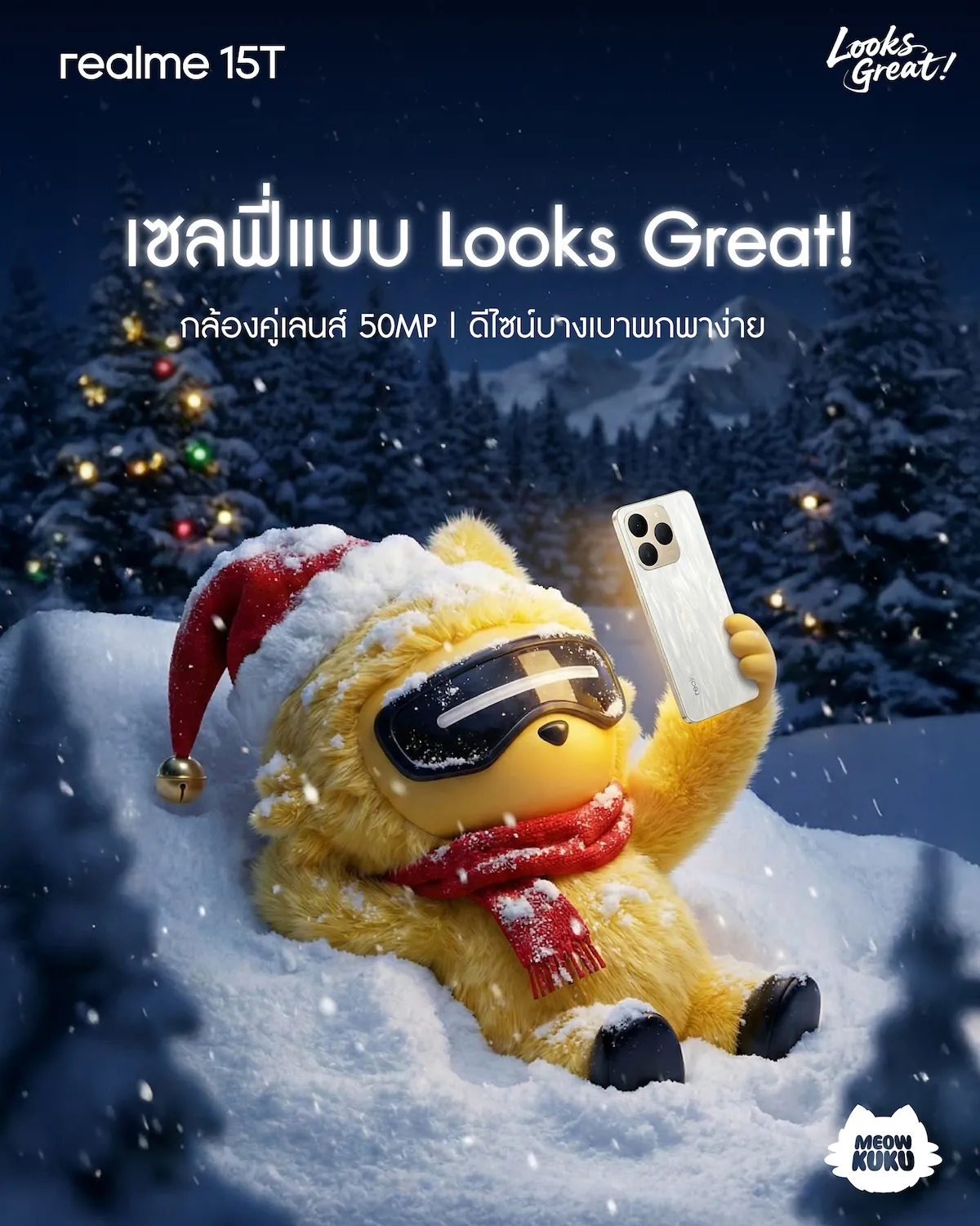 โดยเฉพาะ realme 15 Series 5G ที่ขึ้นแท่นเป็น AI Party Phone เก็บภาพสวยทั้งกลางวันและกลางคืนด้วย AI Party Mode พร้อมกล้องความละเอียด 50MP และถ่ายวิดีโอความละเอียด 4K ได้ทั้งกล้องหน้าและหลัง ช่วยให้ทุกโมเมนต์ของคุณพร้อมแชร์ในคุณภาพระดับโปร