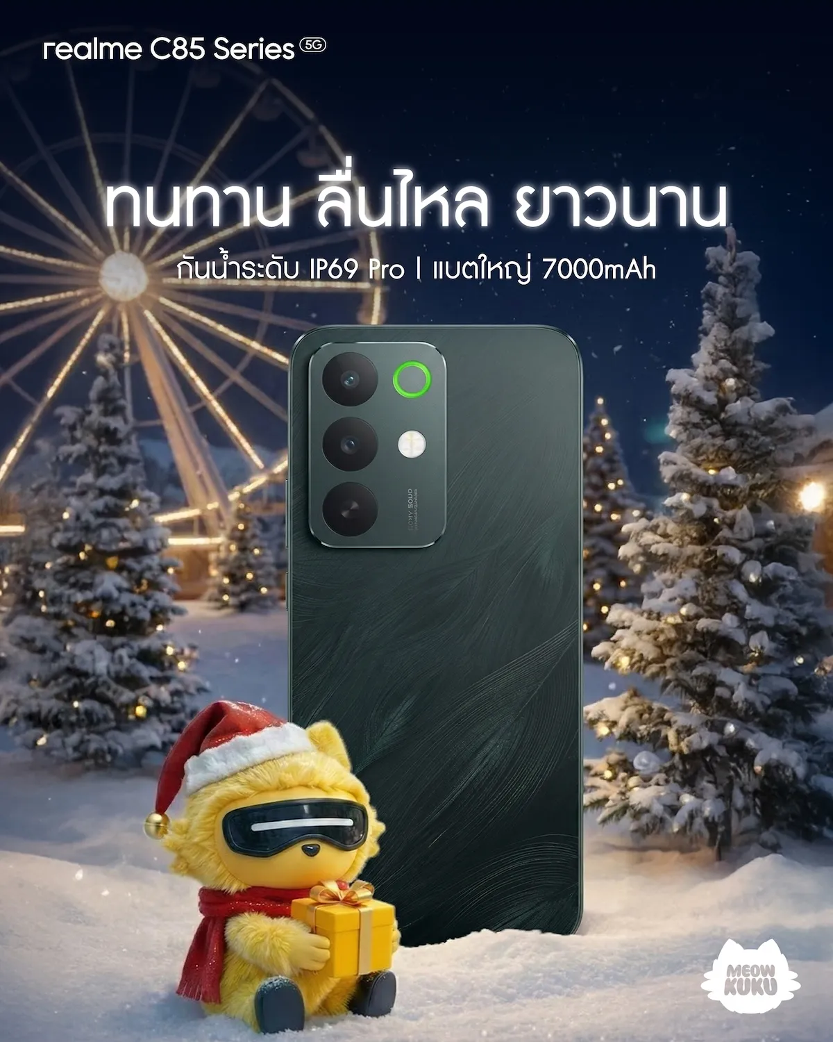 โดยเฉพาะ realme C85 Series 5G ที่ถูกยกย่องว่าเป็นสมาร์ทโฟนสุดทนทานแห่งปี มอบความคุ้มค่าในทุกด้าน ทั้งการกันน้ำระดับ IP69 Pro ซึ่งสูงสุดในช่วงราคา แบตเตอรี่ขนาดใหญ่ 7000mAh ใช้งานได้ยาวนานตลอดทั้งวัน และหน้าจอขนาด 6.8 นิ้ว ที่ใหญ่ที่สุดในกลุ่มราคาเดียวกัน ทำให้เป็นตัวเลือกที่ตอบโจทย์ทั้งความทนทานและการใช้งานที่เต็มอิ่มในทุกมุมมอง