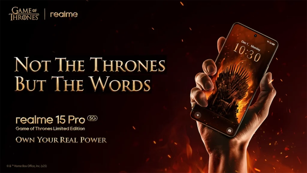realme 15 Pro Game of Thrones Limited Edition จึงไม่ใช่เพียงสมาร์ตโฟน แต่คือประกาศิตแห่งความกล้าหาญและความคิดสร้างสรรค์ เหมือนคบเพลิงที่พร้อมส่งต่อพลังให้ผู้ครอบครองกำหนดโชคชะตาของตนเอง”