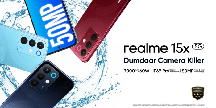 realme อ้างว่าด้วยมาตรฐาน “IP69 Pro” ทำให้ realme 15x สามารถป้องกันของเหลวได้ถึง 36 ชนิด ในช่วงอุณหภูมิตั้งแต่ 0°C ถึง 85°C