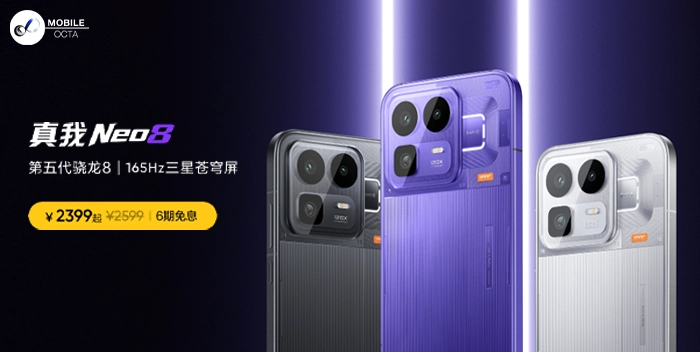 realme Neo8 มีให้เลือก 3 สี ได้แก่ Cyber Purple, Mecha Grey และ Origin White โดยมีราคาแบ่งตามรุ่นความจุดังนี้: