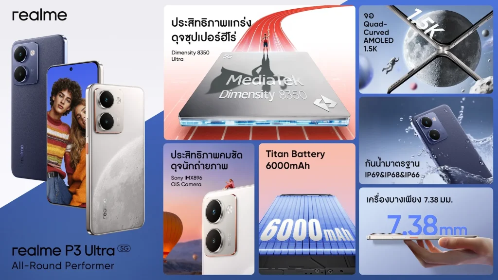 realme (เรียลมี) แบรนด์สมาร์ตโฟนเพื่อคนรุ่นใหม่ที่เติบโตเร็วที่สุดในโลก ประกาศราคา “realme P3 Series” ทั้งรุ่น “realme P3 Ultra 5G” และ “realme P3 5G” อย่างเป็นทางการในเมืองไทย เริ่มต้นที่ 9,999 บาท มอบความคุ้มค่า คุ้มราคาสูงสุด ผสานประสิทธิภาพที่เหนือชั้น การเล่นเกมที่ลื่นไหล กล้อง AI อัจฉริยะ และดีไซน์หรูหราบางเฉียบ