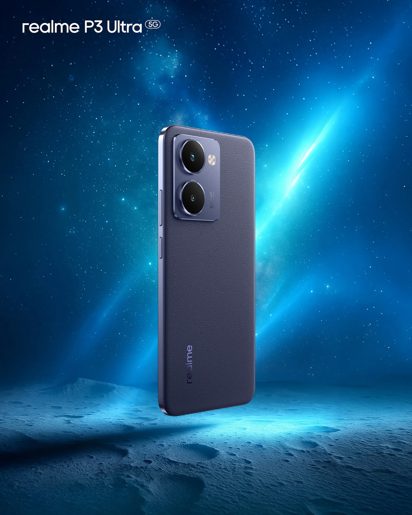 realme P3 Ultra 5G มาพร้อมดีไซน์ Glowing Lunar Design ที่ได้แรงบันดาลใจจากละอองแห่งดวงจันทร์ ใช้เทคโนโลยี Starlight Ink ที่เปล่งประกายราวกับดวงดาวนับพันบนพื้นผิวฝาหลังที่เปลี่ยนสีได้ตามแสง พร้อม Cosmic Star Ring Deco ที่ให้ความรู้สึกราวกับมองออกไปจากพื้นผิวดวงจันทร์สู่อวกาศอันกว้างใหญ่ไร้ขอบเขต วางจำหน่ายในโทนสีขาว Glowing Lunar White และ Neptune Blue สุดล้ำ