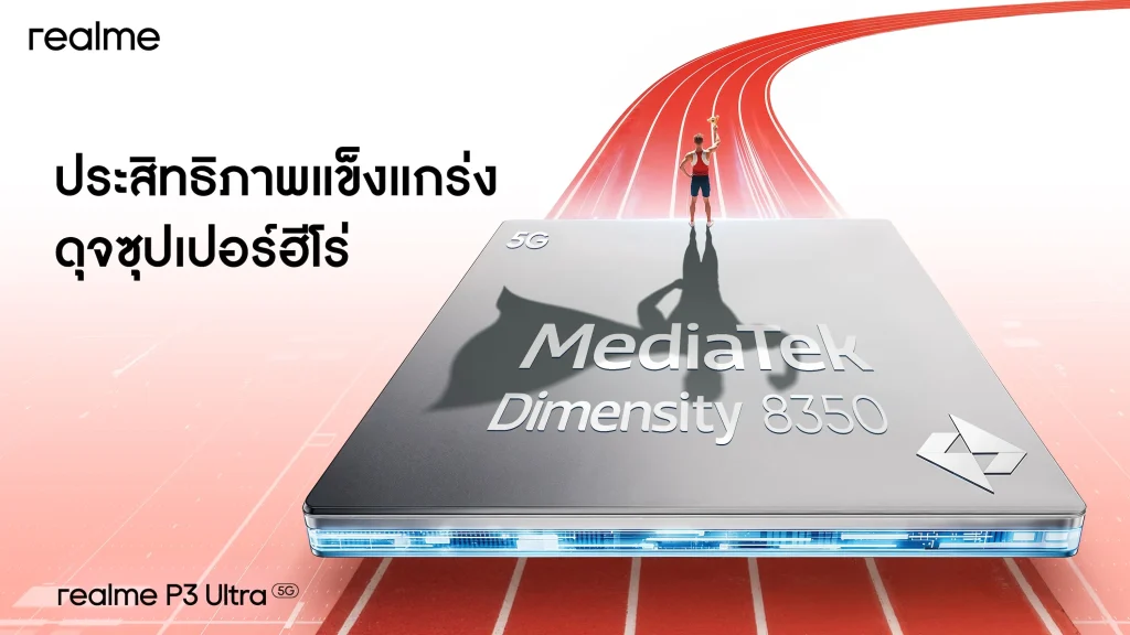 realme P3 Ultra 5G มาพร้อมชิปเซ็ตตัวท็อปอย่าง MediaTek Dimensity 8350 Ultra มอบประสิทธิภาพ GPU เพิ่มขึ้นถึง 60% พร้อมลดการใช้พลังงานลง 55% ทำคะแนน AnTuTu ทะลุ 1.45 ล้าน และให้คุณเปิดแอปพลิเคชันได้ถึง 30 แอปภายในเวลาเพียง 95 วินาที! ตอบโจทย์การทำงานแบบมัลติทาสก์ได้เหนือระดับ