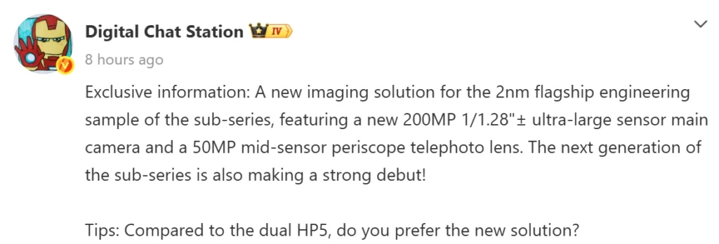 ข้อมูลใหม่นี้ยังชี้ให้เห็นว่า Redmi อาจยกเลิกแผนเดิมที่เคยลือว่าจะใช้ระบบกล้องคู่ Samsung HP5 และหันมาใช้การตั้งค่าใหม่นี้แทน โดยคาดการณ์สเปคกล้องเต็มรูปแบบของ Redmi K100 Pro Max น่าจะประกอบด้วย: