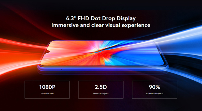 ตัวเครื่องมีขนาด 158.3 x 75.3 x 8.35 มม. และน้ำหนัก 190 กรัม เคลือบนาโนกันน้ำกระเซ็น หน้าจอแสดงผลแบบ IPS LCD ความละเอียด FHD+ 1080 x 2340 พิกเซล (409 PPI) ขนาด 6.3 นิ้ว ในอัตราส่วน 19.5:9 ความสว่างสุงสุด 500nits และครอบทับด้วยกระจกกันรอย Corning Gorilla Glass 5