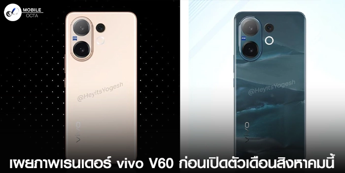 @heyitsyogesh หรือ Yogesh Brar แหล่งข่าวหลุดสมาร์ตโฟนได้โพสต์ภาพเรนเดอร์แรกของ vivo V60 ผ่านบัญชี X ส่วนตัว เผยให้เห็นดีไซน์ที่มีลักษณะคล้ายกับ vivo S30 ที่วางจำหน่ายเฉพาะในจีน ยกเว้นโลโก้ ZEISS ที่ด้านบนของกล้อง ซึ่งบ่งชี้ว่ากล้องของ V60 ได้รับการพัฒนาร่วมกับ ZEISS