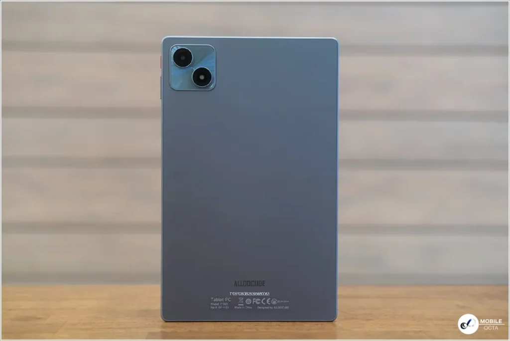 ด้านหลังมุมซ้ายด้านบนติดตั้งเลนส์กล้องความละเอียด 5 ล้านพิกเซล พร้อมไฟแฟลช LED และมีโลโก้ Alldocube อยู่ตรงกลางด้านล่าง