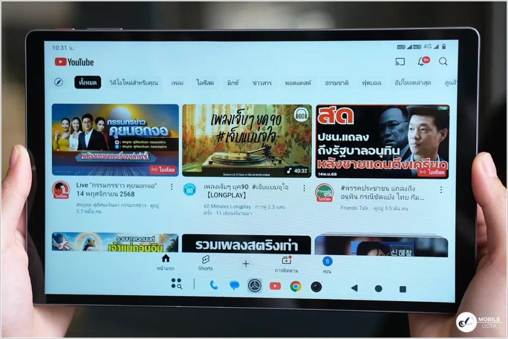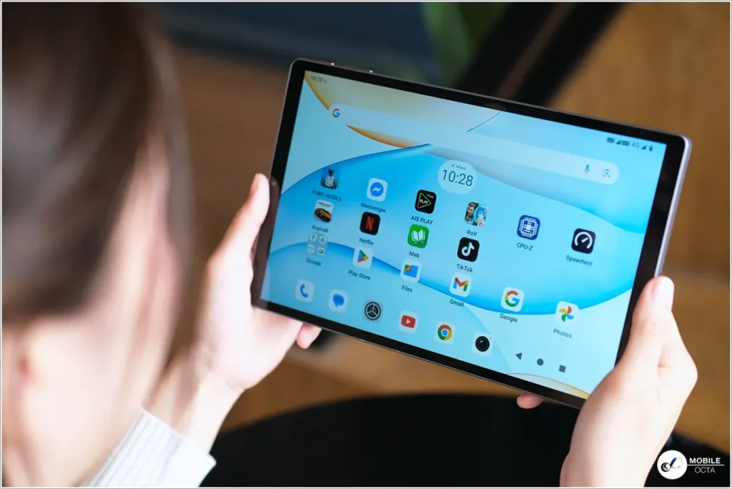 แต่ด้วยอัตรารีเฟรชเรท 90Hz ซึ่งน่าประทับใจมากสำหรับแท็บเล็ตราคาประหยัด มันช่วยให้การไถฟีดหน้าจอ (Scrolling) บนเว็บไซต์หรือโซเชียลมีเดีย ดูลื่นไหลและสบายตาขึ้น อย่างเห็นได้ชัด เมื่อเทียบกับจอ 60Hz ทั่วไป
