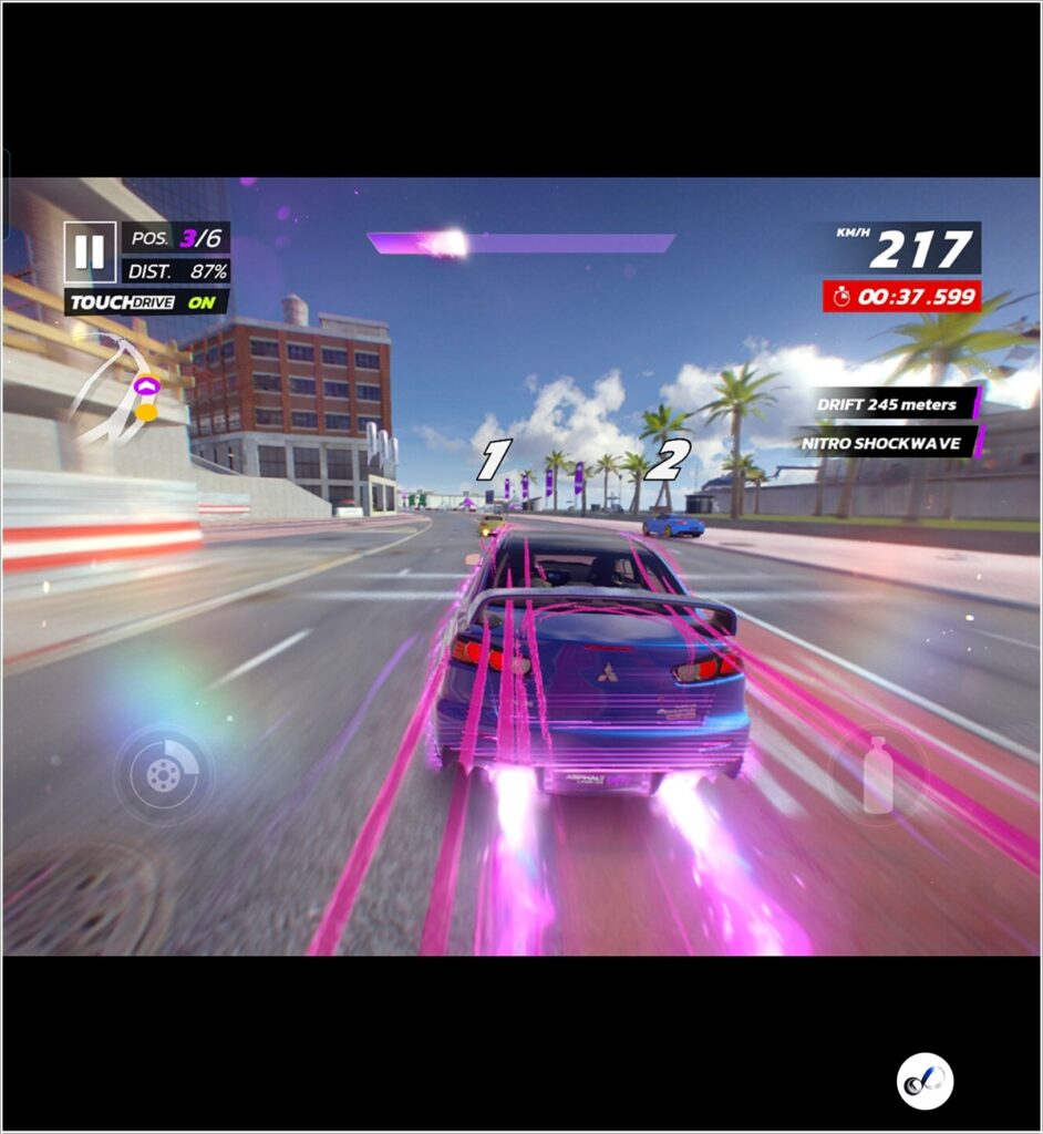 เริ่มที่ Asphalt 9 เกมแข่งรถที่มีภาพสุดสวยกันก่อน โดยตั้งค่าคุณภาพภาพระดับสูง ซึ่งถ้าเล่นด้านหน้าจอแสดงผลก็จะเห็นมุมมองที่กว้างแบบชัดเจน ทำให้เห็นได้เยอะ แต่จะเห็นรถยนต์คันเล็ก ขณะที่ถ้าเล่นบนหน้าจอแสดงผลด้านในที่กางหน้าจอออกมาก็จะเป็นอีกสัดส่วนหนึ่งเห็นรถยนต์ขนาดใหญ่ แต่ฉากในเกมจะเล็กลง โดยรวมแล้วสามารถเล่นได้ลื่นไหลดีมาก และสามารถสลับสลับไปเล่นในแบบหน้าจอหลักหรือจอนอกได้แบบทันทีโดยที่ไม่ต้องกดออกจากเกม